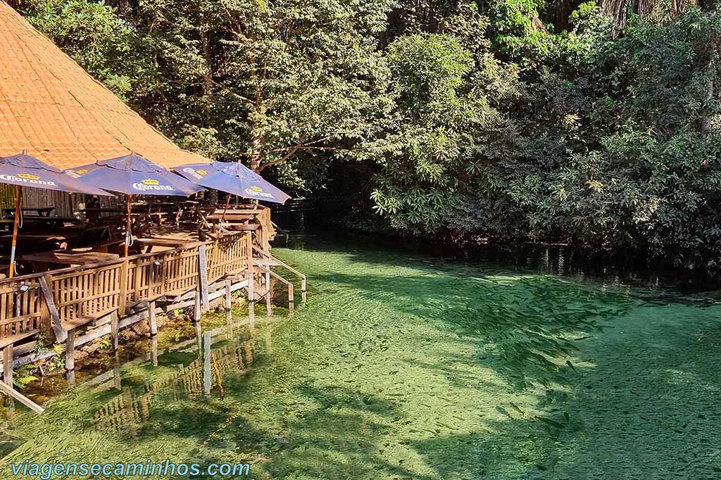 Durante os passeios, fica melhor almoçar em alguns dos atrativos para não precisar ir e voltar à cidade. Atrativos como o SESC Serra Azul e o Aquário Azul são as melhores opções, com buffets com preço fixo.