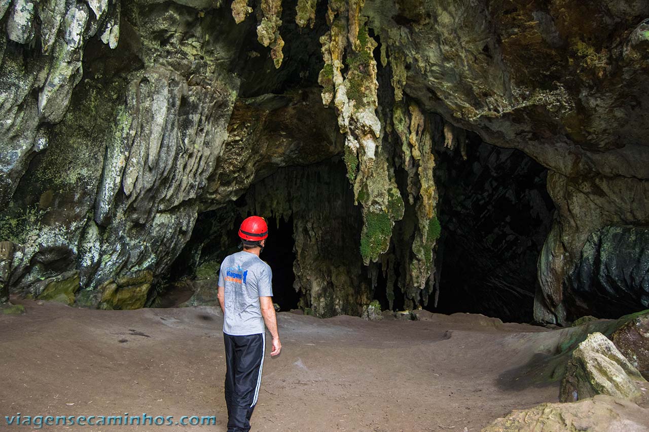 O roteiro tradicional por dentro desta caverna se dá pelo curso do rio com um trecho com água no peito, atravessando a montanha. Porém, quando o nível da água está mais alto é feito um roteiro seco alternativo.