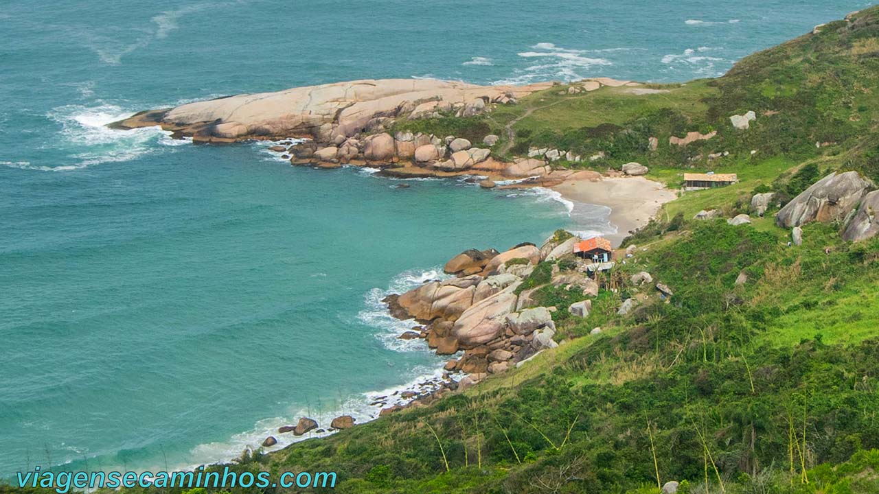 É a melhor trilha de Florianópolis. Há acesso por duas praias em sentidos diferentes; Por Pântano do Sul (2,2 km) ou pela praia da Armação (5,5 km).