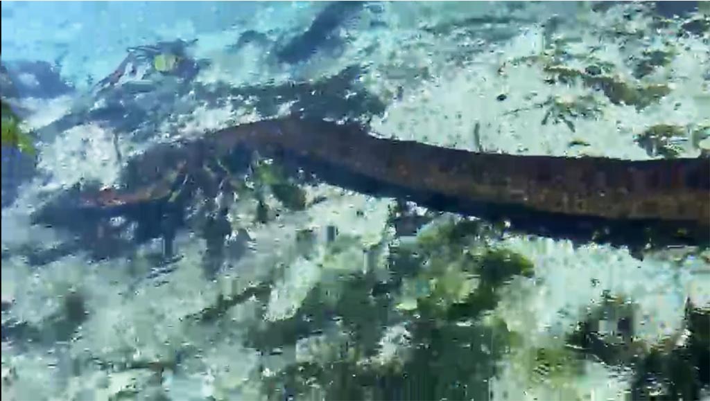 Dois dias depois que fizemos a flutuação no Rio Sucuri, uma amiga que fizemos por lá (junto com o grupo), tiveram a desventura ou privilégio de encontrar uma enorme Sucuri passeando pelo rio.