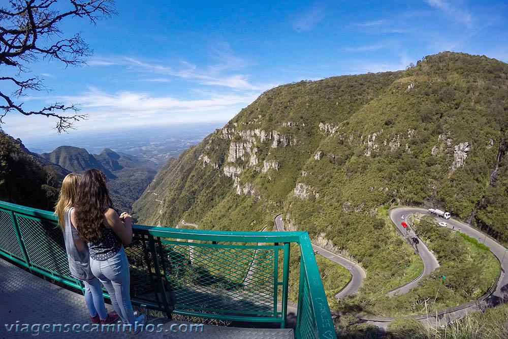O mirante localizado no seu topo, a mais de 1460 metros de altitude, proporciona uma vista espetacular da estrada, da Serra do Rastro e da planície abaixo. É um dos cartões postais do estado de Santa Catarina.